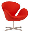 Кресло Swan Chair (Лебедь), созданное датским дизайнером Арне Якобсеном (Arne Jacobsen) в 1958 г., стало настоящей сенсацией для своего времени, было достаточно инновационным, т.к. вместо прямых линий предпочтение было отдано округлым формам. Мебель этого дизайнера давно вошла в историю мебелестроения и стало шедевром, мировым достоянием искусства. Элегантная анатомическая форма и небольшие размеры делают его привлекательным элементом оформления любого интерьера и по сей день. Небольшое, но очень уютное кресло смотрится современно и украсит гостиную или рабочий кабинет. Идеально сочетается с предметами мебели в стиле хай-тек. Каркас кресла представляет собой литую синтетическую раковину из стекловолокна, покрытую пенополиуретаном. Сидение крепится на вращающемся крестообразном основании из нержавеющей стали. Обивка кресла сделана из кашемировой ткани красного цвета. В нашем магазине можно приобрести отличную реплику кресла Swan Chair в нескольких вариантах обивки. Высота от пола до сидения - 38 см.