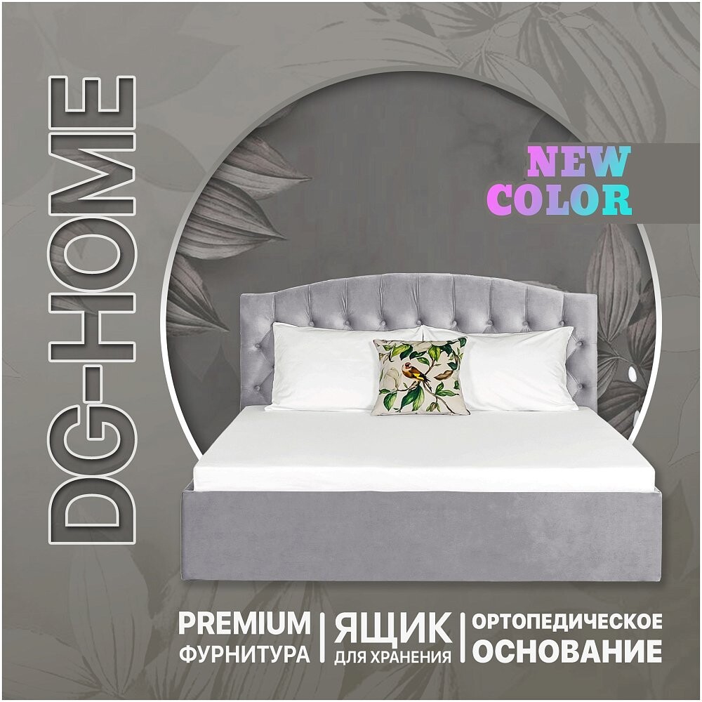 Дизайнерская кровать: Кровать двуспальная с подъемным механизмом и ящиком для белья 160х200 жемчужно-серая Грация