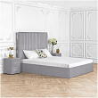 Дизайнерская кровать: Кровать евро с подъемным механизмом и ящиком для белья 200х200 жемчужно-серая Amore