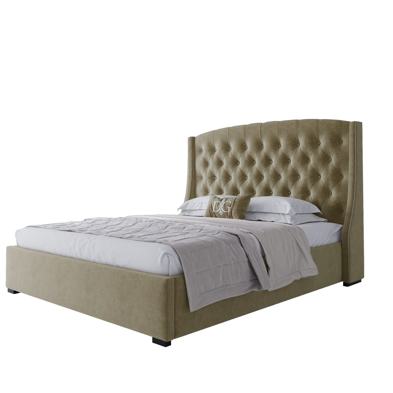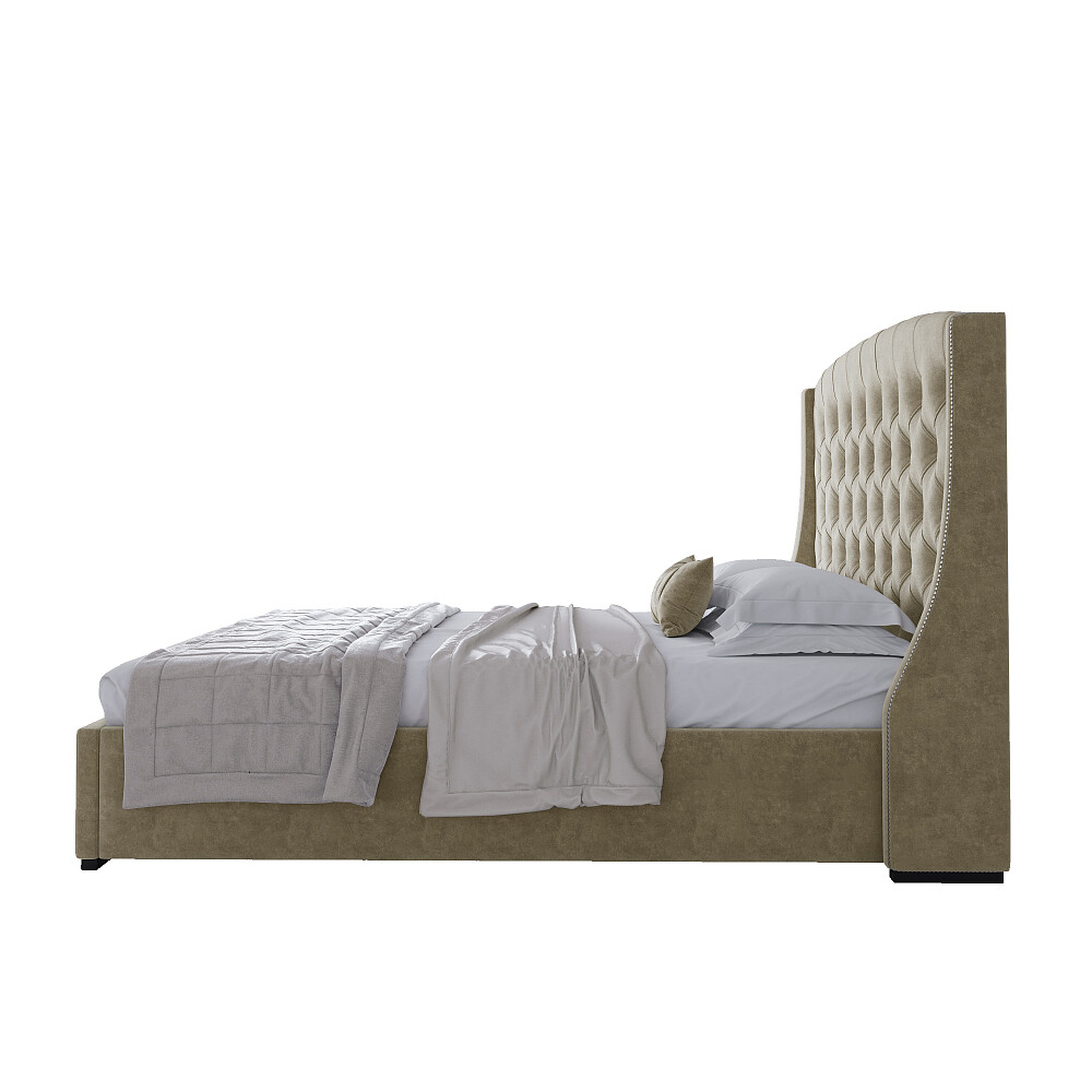 Кровать двуспальная 180х200 без гвоздиков песочная из велюра Hugo