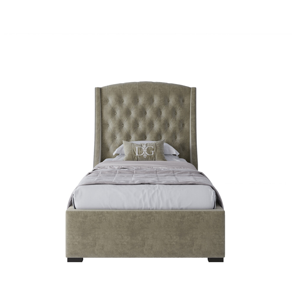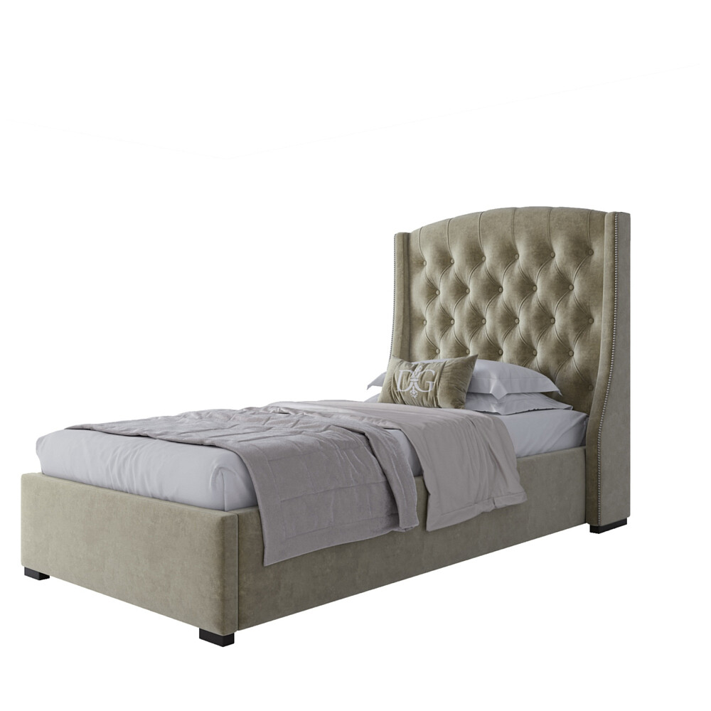 Дизайнерская кровать: Кровать односпальная 90х200 с гвоздиками велюр коричнево-серый Hugo Р