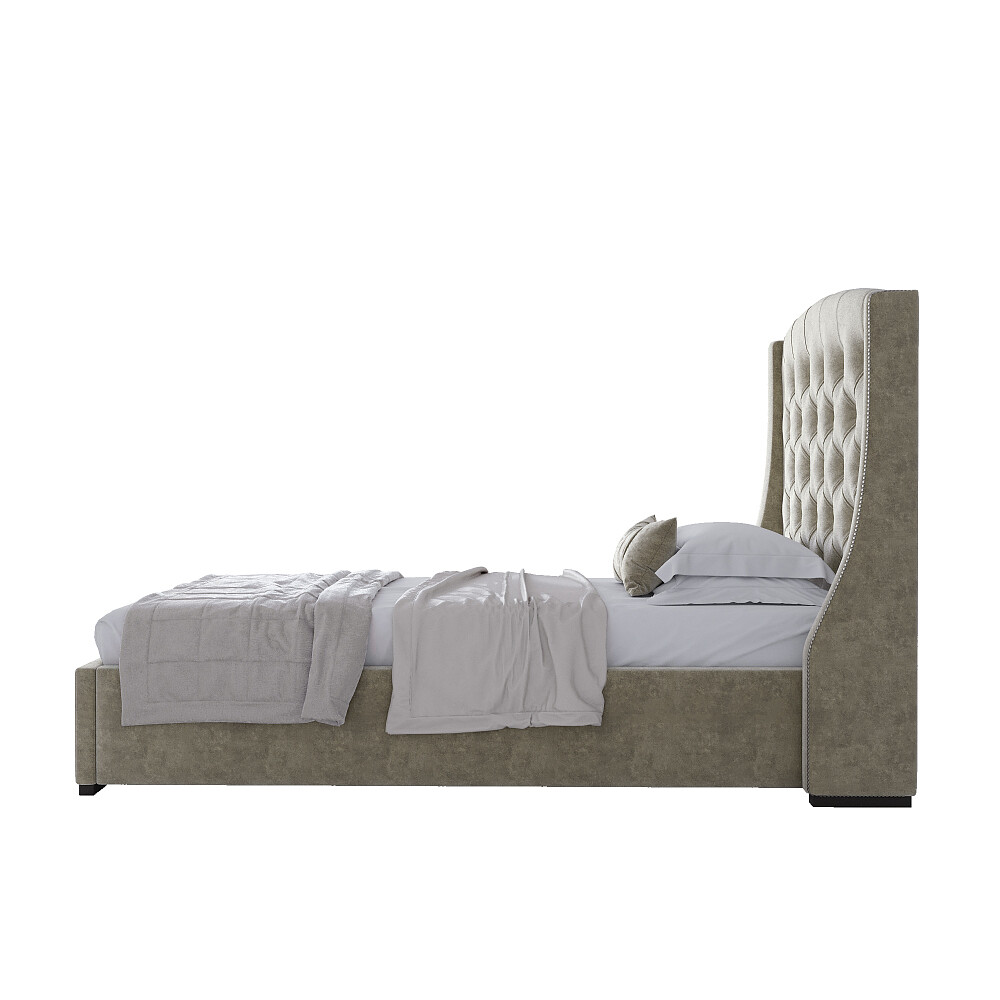 Кровать двуспальная 160х200 без гвоздиков серо-бежевая из велюра Hugo Р