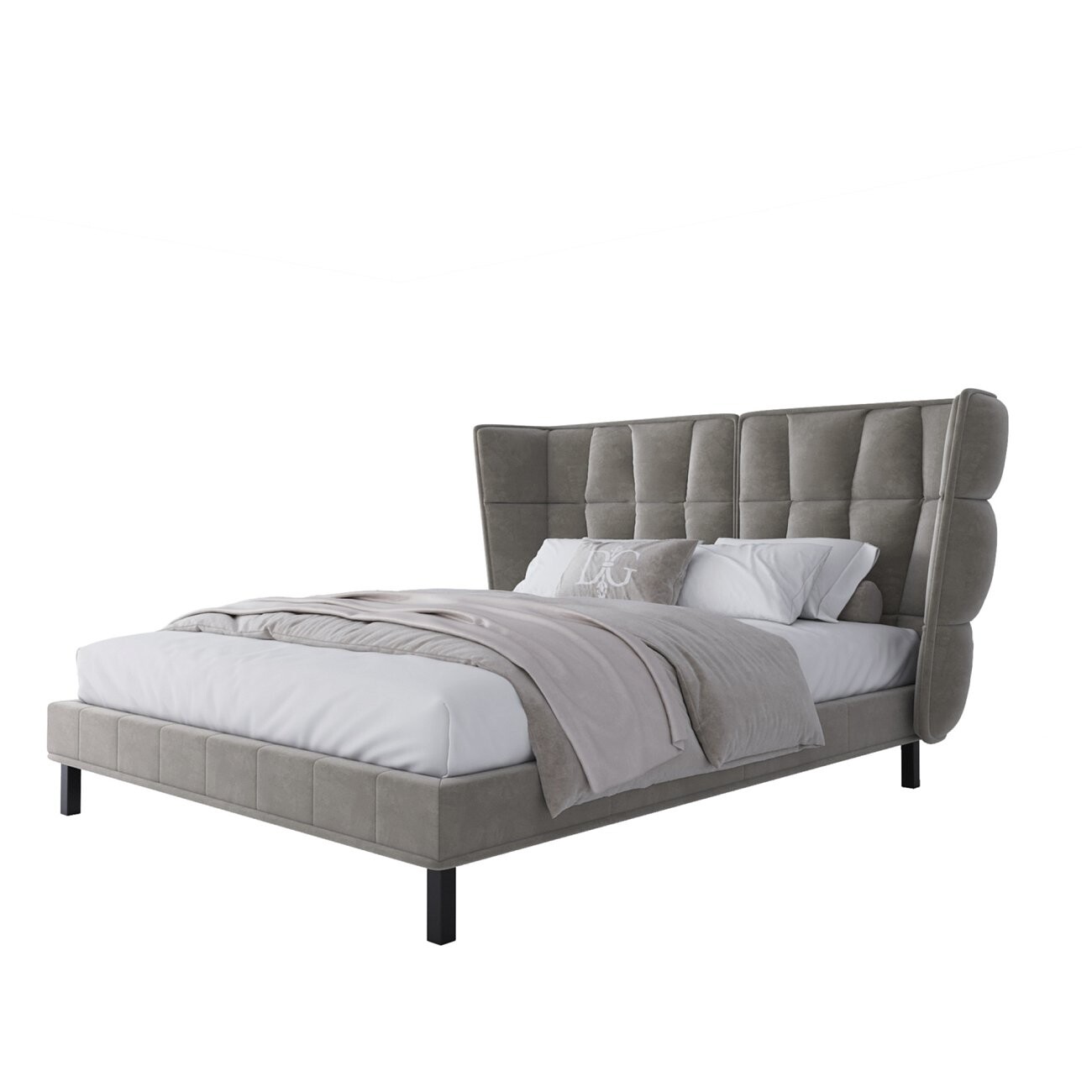 Кровать Husk2 двуспальная 160х200 серо-бежевый Textile data Miss-32 +1