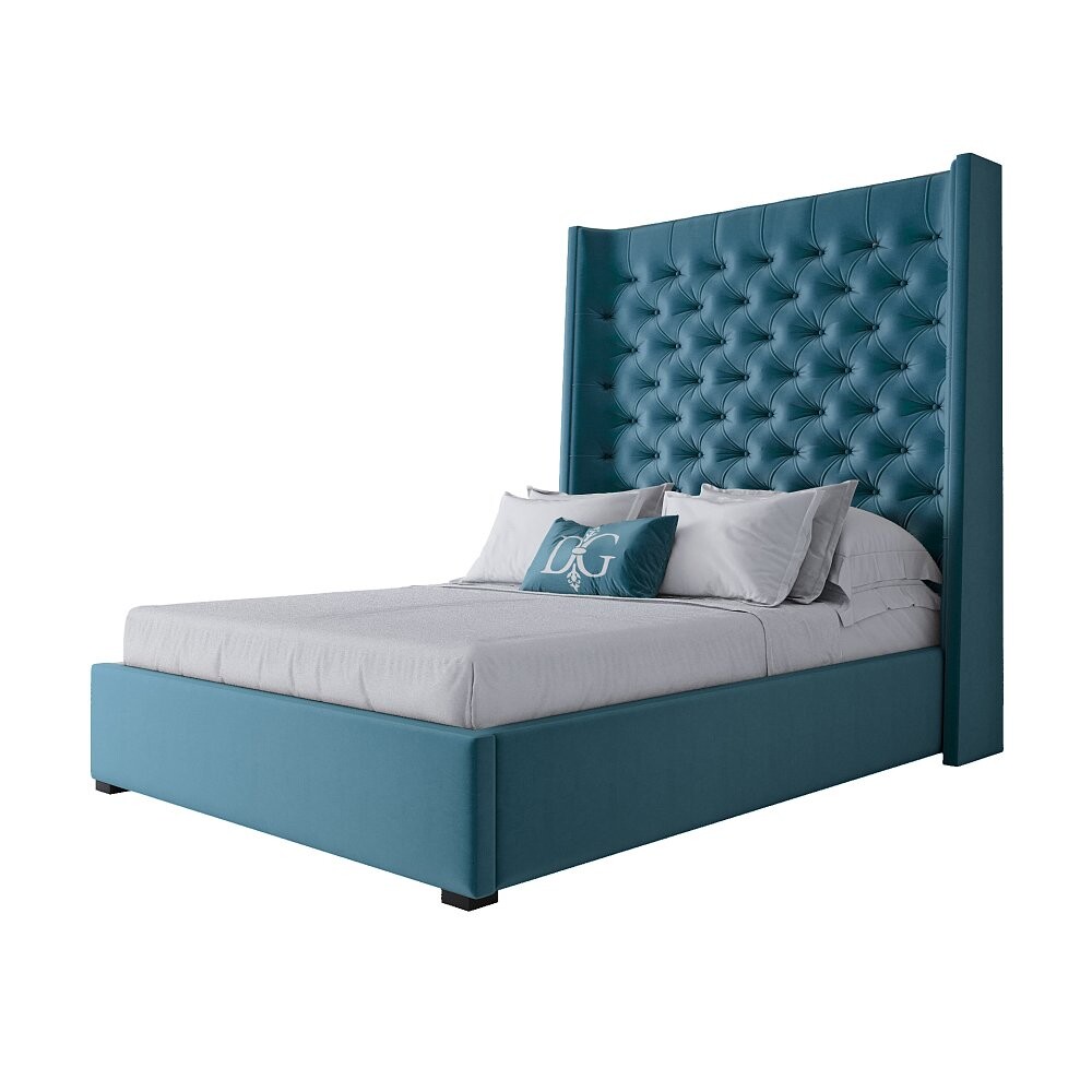 Дизайнерская кровать: Кровать подростковая с каретной стяжкой 140х200 бирюзовая Jackie King