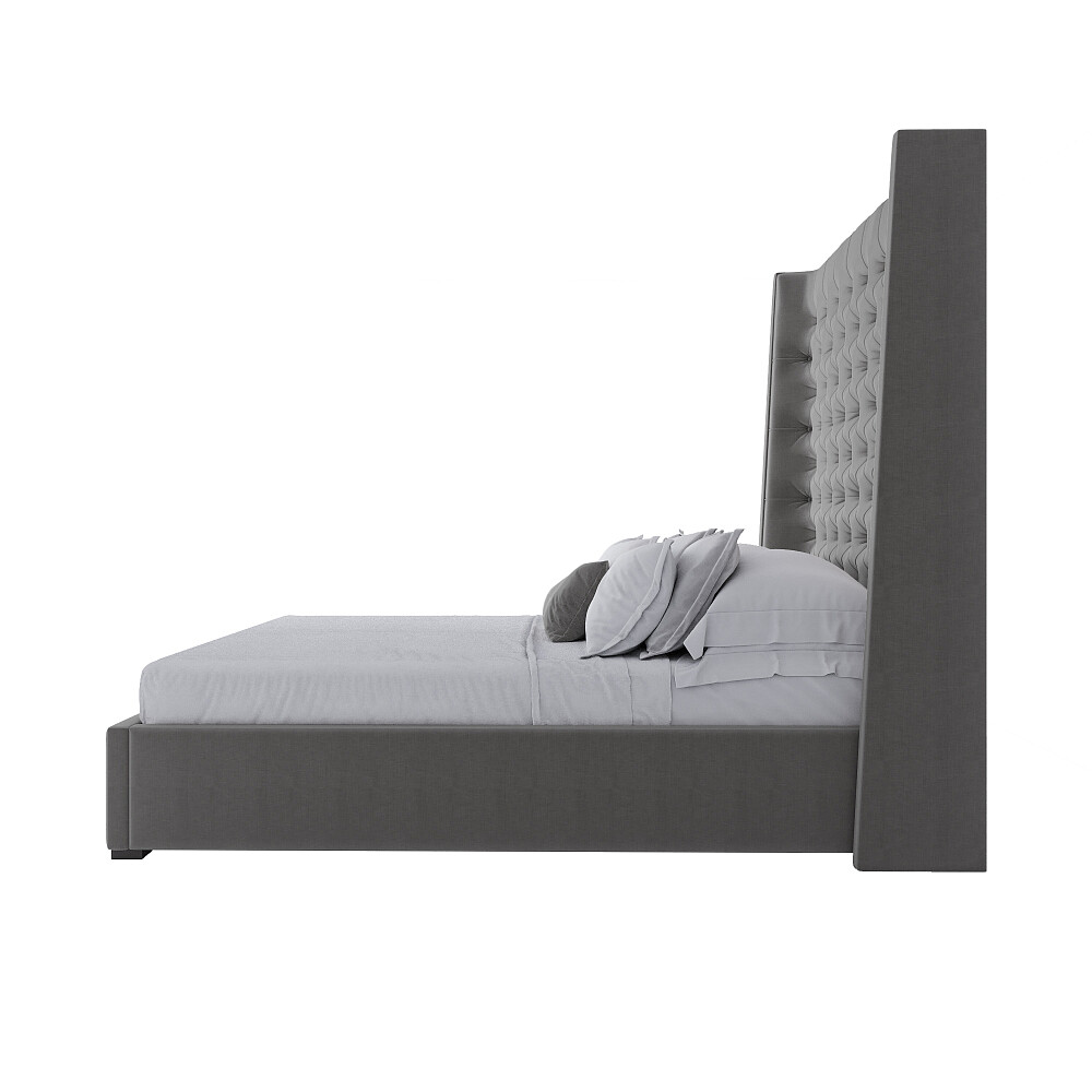Кровать двуспальная 160х200 серая из велюра Jackie King