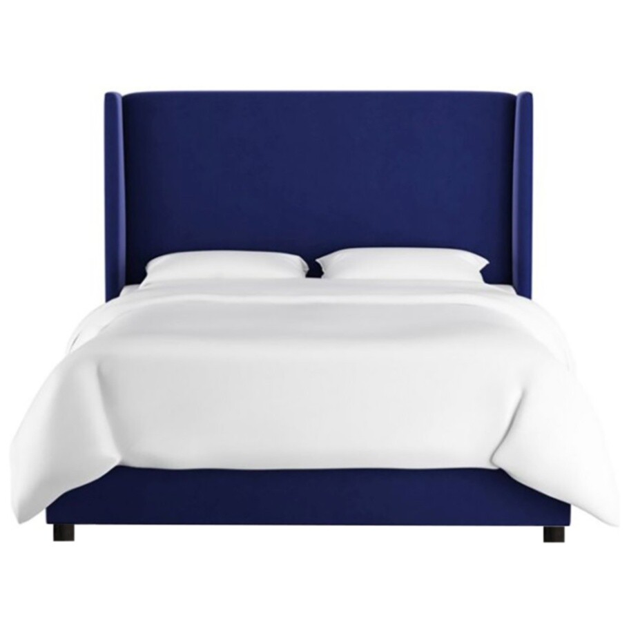 Кровать двуспальная 180х200 синяя Kelly Wingback Blue Velvet