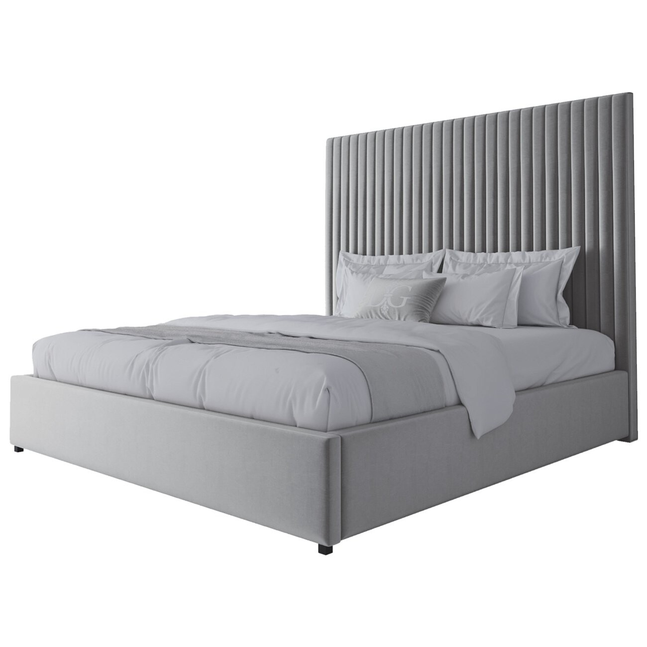 Кровать двуспальная с мягким изголовьем 180х200 светло-серая Mora - изображение 2