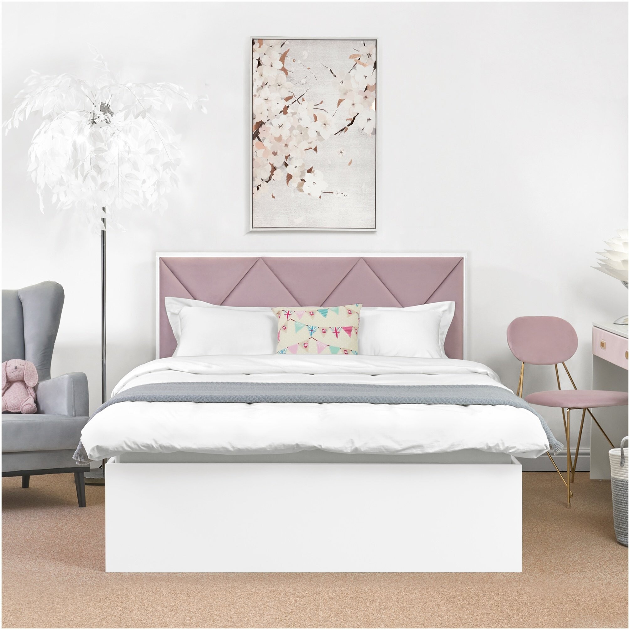 Кровать полутораспальная с двумя ящиками для белья 140х200 розовая, белая Dreamy - изображение 1