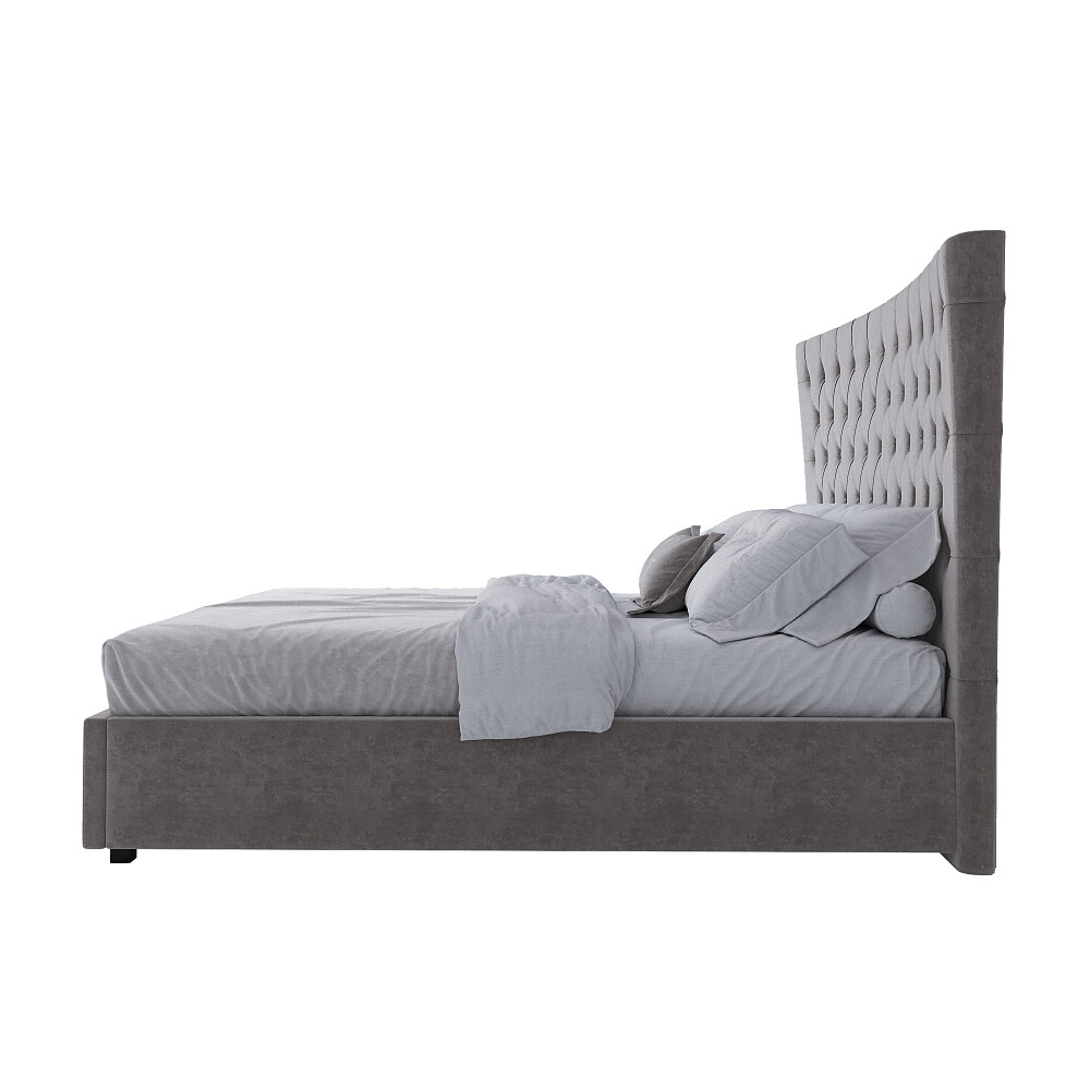 Высокое фигурное изголовье, обитое велюром, изящество линий и форм, изысканный дизайн и эффектный цвет делают эту модель неотразимой.