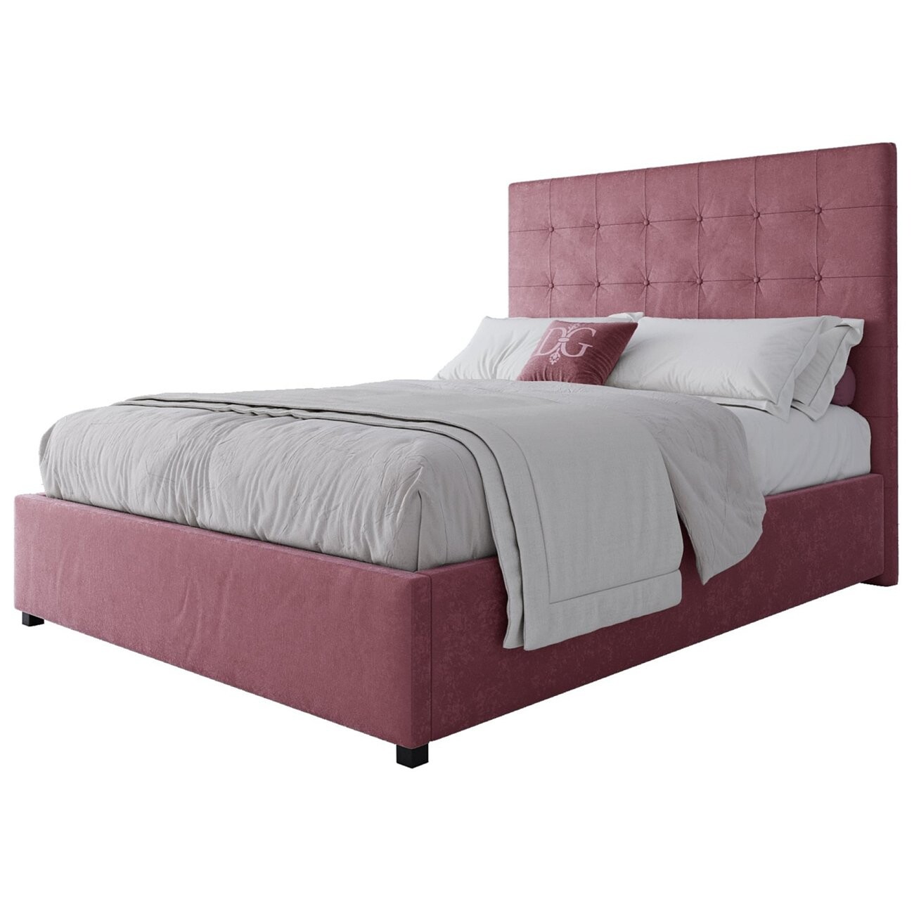 Кровать Royal Black на устойчивых ножках с прочным каркасом из МДФ. Она имеет прямое и плоское мягкое изголовье с обивкой из велюра, абсолютно ничем не декорированное, за счет чего смотрится очень стильно.