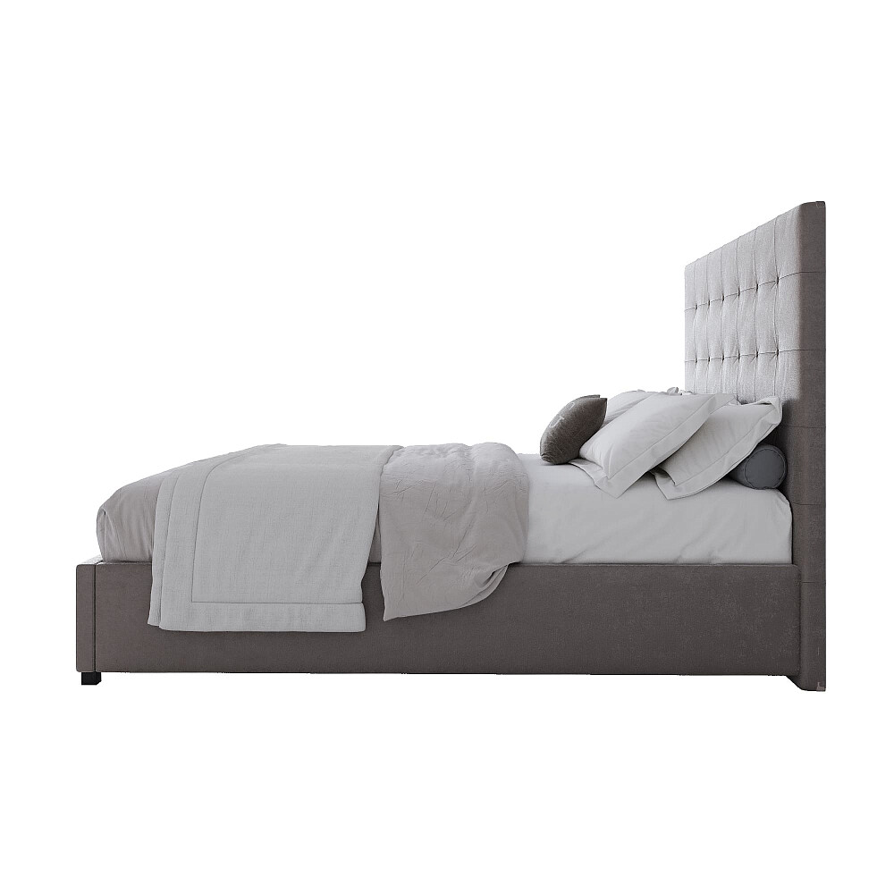 Кровать Royal Black на устойчивых ножках с прочным каркасом из МДФ. Она имеет прямое и плоское мягкое изголовье с обивкой из велюра, абсолютно ничем не декорированное, за счет чего смотрится очень стильно.