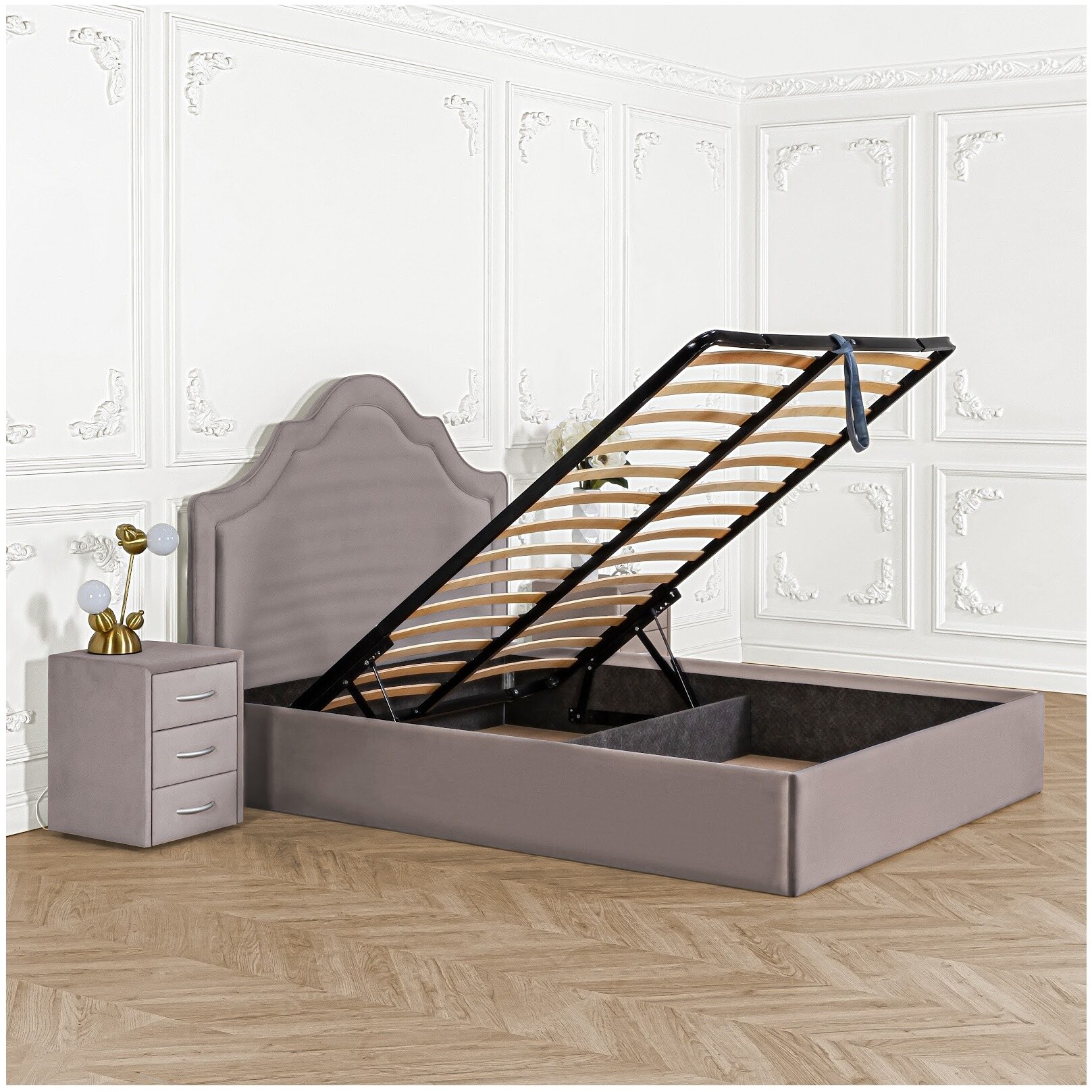 Кровать евро с подъемным механизмом и ящиком для белья 200х200 жемчужно-серая Грация