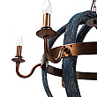 Люстра Federico. Довольно большая, около метра в диаметре, люстра Federico напоминает о замковых интерьерах. На центральном металлическом ободе сферы из гнутых деревянных брусков синего цвета закреплены металлические канделябры бронзового цвета для ламп-свечей. Высота светильника может регулироваться за счет звеньев цепи, на которой он висит.