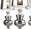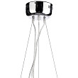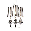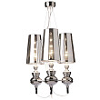 Люстра Odeon. Люстра Odeon — футуристичная модель, которая словно спустилась на Землю из космоса. Она выполнена из хромированного металла. Люстра крепится к потолку с помощью небольшого круглого основания, на нем держатся три одинаковых абажура из поливинилхлорида, также выполненных в цвете «металлик», внизу у абажуров расположены фигурные декоративные элементы округлой формы.