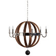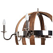 Люстра Versailles. С виду простая, но очень оригинальная люстра VERSAILLES выполнена в виде шести деревянных обручей, скрепленных посередине металлическим никелированным ободом. По окружности обода, напротив каждого обруча, расположены держатели ламп в виде подсвечников. Коричневый цвет состаренного дерева люстры подойдет ко многим интерьерам, особенно если в помещении есть мебель из натурального дерева.