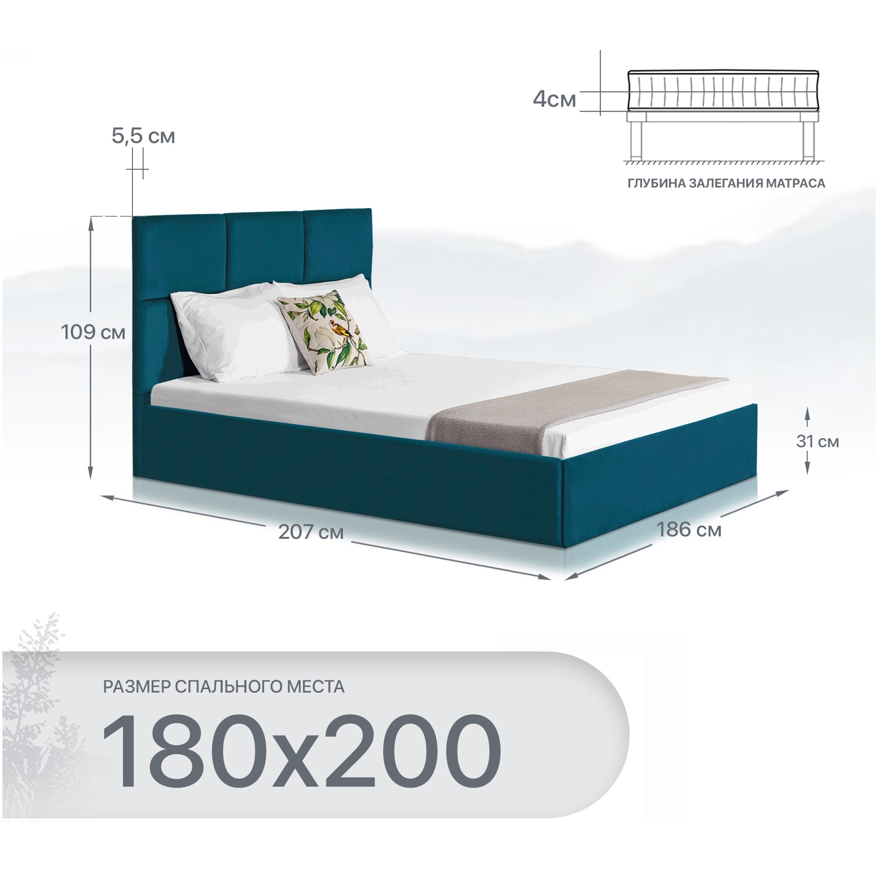 Кровать евро с подъемным механизмом и ящиком для белья 200х200 изумрудная Luna