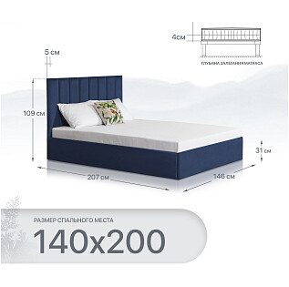 Кровать полутораспальная с подъемным механизмом и ящиком для белья 140х200 темно-синяя "Эстетика"