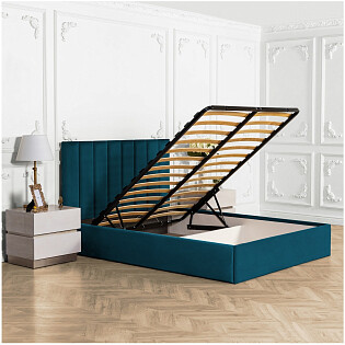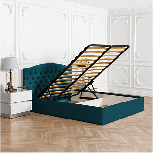 Кровать двуспальная с подъемным механизмом и ящиком для белья 160х200 изумрудная Luna