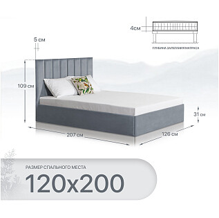 Кровать полутораспальная с подъемным механизмом и ящиком для белья 120х200 серо-голубая Вега