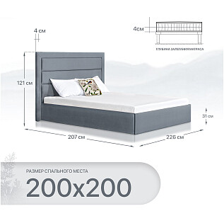Кровать евро с подъемным механизмом и ящиком для белья 200х200 жемчужно-серая Вега