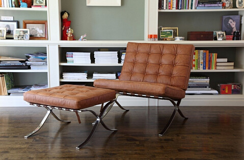 Стул барный кожаный черный с металлическим каркасом, хром Barcelona