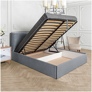 Кровать двуспальная с подъемным механизмом и ящиком для белья 160х200 серо-голубая Amore