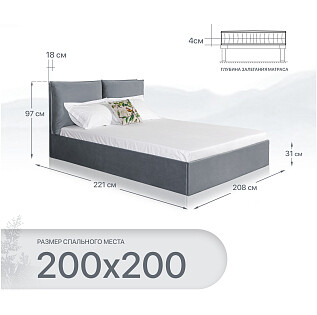 Кровать евро с подъемным механизмом и ящиком для белья 200х200 жемчужно-серая Эстетика