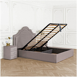 Кровать двуспальная с подъемным механизмом и ящиком для белья 180х200 бежевая Мелисса