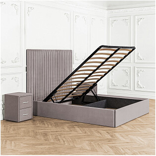 Кровать двуспальная с подъемным механизмом и ящиком для белья 180х200 жемчужно-серая Вега