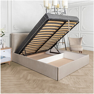 Кровать двуспальная с подъемным механизмом и ящиком для белья 160х200 бежевая Токио