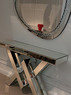 Консоль зеркальная с фигурными ножками и подиумом Nancy