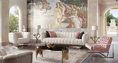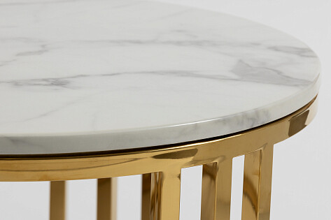 Кофейный столик с белой мраморной столешницей 60 см золото
