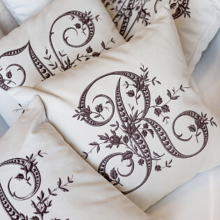 Подушка декоративная 45х45 см бежево-коричневая «Монограмма буквы G»