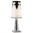 Настольная лампа Atlantic не просто дает мягкий свет, но и служит в качестве элемента декора. Особенно эффектно такая модель будет смотреться на столе лаконичной формы белого или чёрного цвета, потому что и сама лампа выполнена в чёрно-белой гамме. Основание и ножка лампы сделаны из хромированного металла, абажур — из ткани и украшен фигурными узорами.