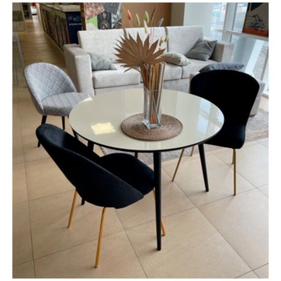 Дизайнерский обеденный стол: Стол обеденный круглый 100 см HPL белый, черный Смит