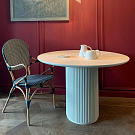 Дизайнерский обеденный стол: Стол обеденный круглый 100 см шпон бежево-серый Оливер