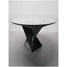 Дизайнерский обеденный стол: Стол обеденный круглый 130 см HPL белый мрамор, черный Стелла