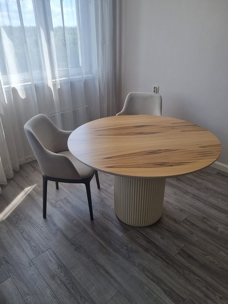 Дизайнерский обеденный стол: Стол обеденный круглый 90 см HPL бежево-белый Оливер
