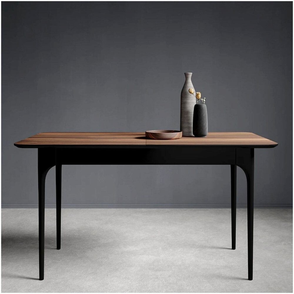 Дизайнерский обеденный стол: Стол-трансформер обеденный прямоугольный 140-180х80 см HPL коричневый, черный Климт