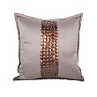 Декоративные подушки способны на все. Этот предмет сумеет дополнить любой интерьер. И наполнит уютом. Подушки могут добавить солидности помещению, или, наоборот, расположить к неформальной обстановке. Все дело в деталях. Подушка Handwork Exclusive выполнена из бежевого сатина и декорирована вручную. Посредине располагается 5 рядов пластиковых клепок насыщенного медного цвета. Густой цвет ткани и переливчатость декора выглядят роскошно. Такая подушка наполнит дом сиянием и блеском.