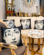 На этой чёрной подушке изображен необычный цветок, с глазом в центре. Вам знаком этот взгляд? Конечно же, это глаза прекрасной Лины Кавальери — музы известного итальянского дизайнера Пьеро Форназетти (Piero Fornasetti). Несомненно, эта подушка станет эксклюзивным украшением вашего стильного интерьера или оригинальным подарком.