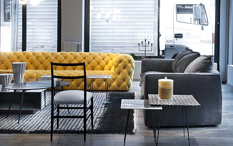 Диван двухместный прямой лимонный со стежкой Barcelona