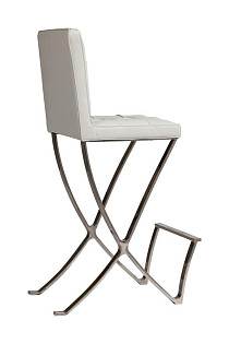 Стул барный кожаный белый с металлическим каркасом, хром Barcelona
