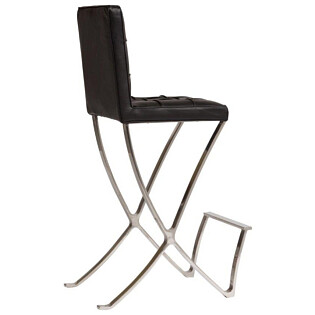 Стул барный кожаный черный с металлическим каркасом, хром Barcelona