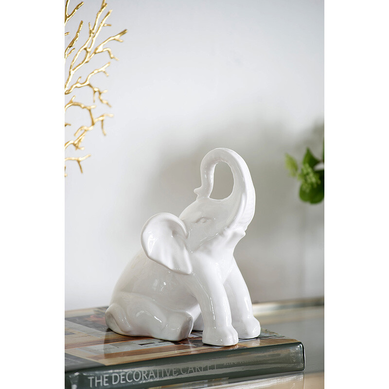 Статуэтка белая керамическая 15 см "Слон" - изображение 1