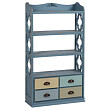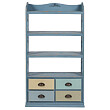 Необычный стеллаж Vikram производит впечатление милого очарования и не похожей ни на что индивидуальности. Предмет хорош не только тем, что представляет собой конструкцию, имеющую как полки, так и вместительные выдвижные ящики. В первую очередь, стеллаж привлекает внимание своим необычным видом — сверху открытые полки, снизу — ящики; потом обращаешь внимание на нестандартный цвет — основной голубой тон, приглушенный эффектом состаривания вместе с пастельными цветами отделки оказывают просто ошеломляющее впечатление. Помимо своих чисто визуальных качеств, стеллаж Vikram обладает еще и другими достоинствами. Эта модель выполнена из ели — дерева, которое мало подвластно гниению. Этот предмет, при всей своей внешней красоте, ещё и очень вместителен и рационален.