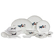 Состав: Тарелка диаметром 16 см - 10 шт.; тарелка диаметром 20 см - 4 шт.; миска диаметром 11 см - 10 шт.; миска диаметром 15 см - 4 шт.; подставка для зубочисток - 1 шт.; пепельница - 1 шт.; блюдо диаметром 19 см - 4 шт.; блюдо диаметром 22 см - 2 шт.; блюдо диаметром 30 см - 1 шт.; блюдо диаметром 27 см - 1 шт. супница - 1 шт.; поварешка - 1 шт.; ложка маленькая - 10 шт.