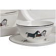 Столовый сервиз Javier выполнен из великолепного фарфора в стиле ампир. Декором служит минимализированный рисунок, в виде скачущих лошадей, контрастно выделяющихся на белом фоне столовых предметов. Сервиз можно приобрести отдельно, а также совместно с другими предметами этой серии.