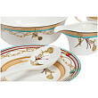 Состав: Тарелка диаметром 30,5 см - 6 шт.; тарелка диаметром 25,5 см - 6 шт.; тарелка диаметром 20 см - 6 шт.; суповая тарелка диаметром 20 см - 6 шт.; чайная пара - 6 шт.; кофейник - 1 шт.; сахарница - 1 шт.; молочник - 1 шт.; подставка для зубочисток - 1 шт.; пепельница - 1 шт.; овальное блюдо диаметром 30,5 см - 1 шт.; овальное блюдо диаметром 35,5 см - 1 шт.; супница - 1 шт.; поварешка - 1 шт.; миска диаметром 11,5 см - 6 шт.; салатница диаметром 20,5 см - 1 шт.; ложка маленькая - 6 шт.; соусница - 1 шт.; тарелка под пирожные диаметром 10 см - 6 шт.; солонка - 1 шт.; перечница - 1 шт.