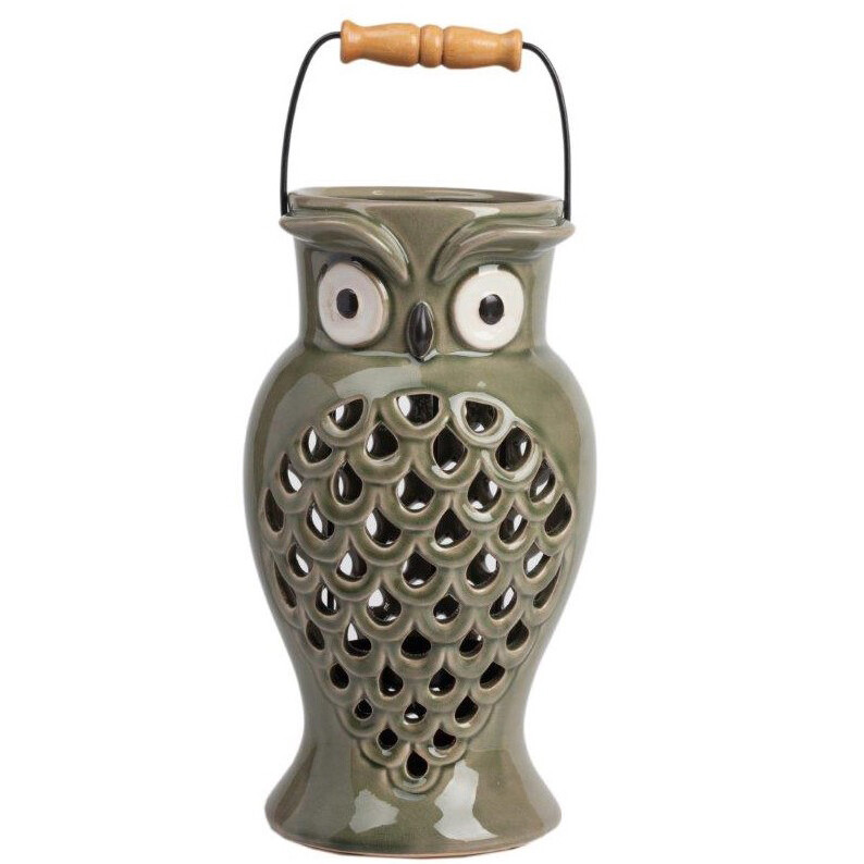 Подсвечник-фонарь керамический серо-зеленый "Сова" Revision - изображение 1